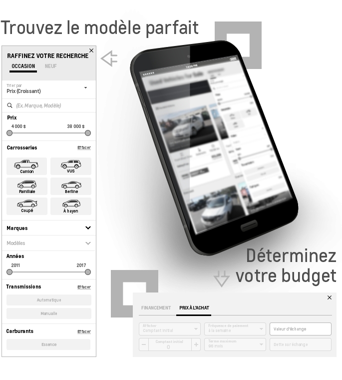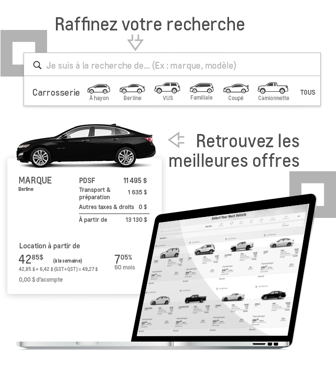 Parcourez notre inventaire en ligne de véhicules neufs ou d'occasion et trouvez le véhicule qui correspond le mieux à vos besoins et à votre budget. Créez votre compte et enregistrez vos modèles préférés dans votre garage virtuel.